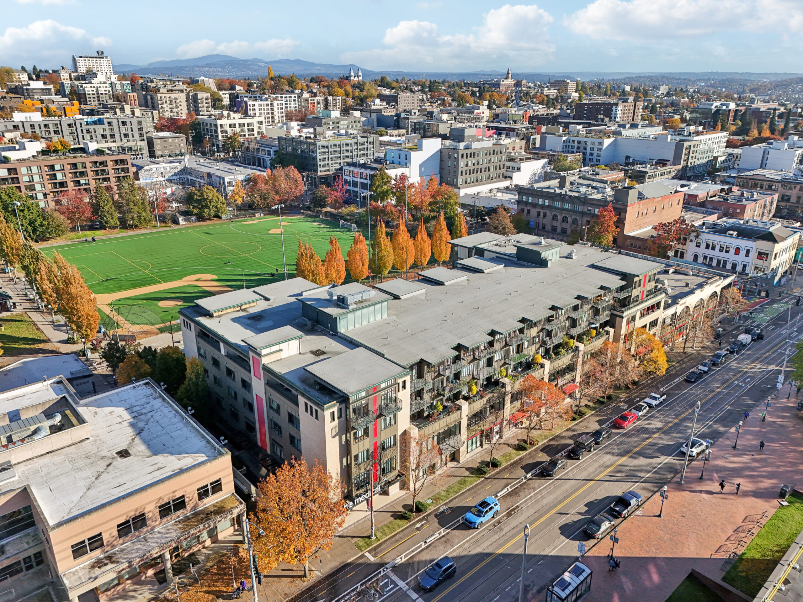 The Broadway Building opened its doors in early 2010. The 178,000 SF building is truly mixed-use. It contains 75 market-rate units, 19 affordable units, 28 Seattle Central College student housing units, 6 office suites marketed toward small local businesses, and 9,000 SF of street level retail. Anchor retailer One Medical is located on the northwest corner of the building.